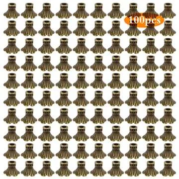 Hmjpng 100pcs Vintage Bronze Flower Bead Caps Tibetan Alloy Tassel End Caps Spacer Bead End Caps Covers Accessories for DIY Earrings Bracelet Jewelry Craft Making