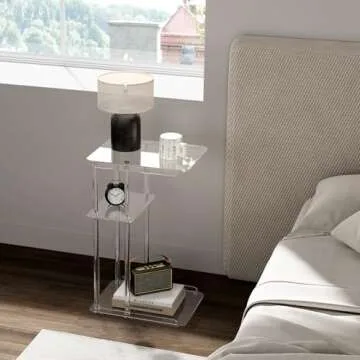 HMYHUM Clear Acrylic Side Table, C Shaped End Table for Sofa, Small Snack Tables for Living Room, Bedroom, Bathroom, 3 Tiers