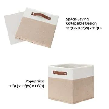 Show moreIntroducing the HNZIGE Fabric Storage Baskets, the perfect blend of style and functionality for your home organization needs! Measuring 11x11x11 inches, these beautifully designed storage cubes come in an elegant White Beige color scheme that complements any decor while providing ample storage. Whether you need a modern toy bin for your nursery or a stylish closet organizer, these bins are your ideal solution. Crafted from premium, breathable materials, these baskets ensure durability and a pleasant aesthetic without any unpleasant odors, making them a delightful addition to any room.