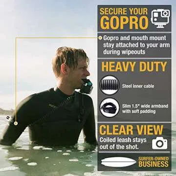 Show more Enhance your adventure with this incredible GoPro armband! Designed specifically for thrill-seekers and sports enthusiasts alike, this sturdy armband ensures that your GoPro and mouth mount stay securely attached, preventing any drops during those intense wipeouts. Whether you're surfing, snowboarding, or engaged in any water activity, you can trust this product to keep your equipment safe while you focus on capturing those epic moments.