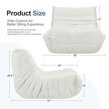 Hobestluk Bean Bag Chairs for Adults Giant BeanBag Chair Sofa Memory Foam Bean Bag Chair Faux Fur Fireside Bean Bags Big Lazy Sofa for Living Room Bedroom Dorm Office (White Plush)