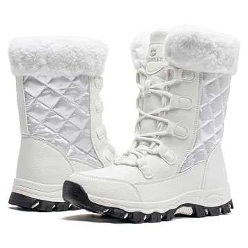 HOBIBEAR Women's Winter Snow Boots Waterproof Lightweight Warm Faux Fur Lined Mid-Calf Booties(White Size 8 Women