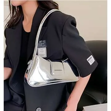 Stylish Y2K Sparkly Silver Hobo Bag for Women - Evening Clutch 2024