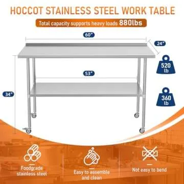 HOCCOT Stainless Steel Prep & Work Table with Adjustable Shelf, with Backsplash and Wheels, Kitchen Island, Commercial Workstations, Utility Table in Kitchen Garage Laundry Room Outdoor BBQ, 24" X 60"