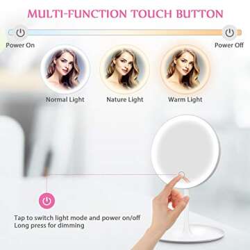 with three adjustable color lighting modes—warm, natural, and