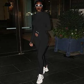 HODMEXI Women Embroidery Zipper High Neck Long Sleeve Bodycon Jumpsuit Shorts Rompers Party Clubwear Outfits Bodysuit (Black-1, L)