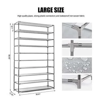 HODYANN 10-Tier Shoe Rack, Non-Woven Fabric Storage Organizer, 50 Pairs Space-Saving Shoe Tower
