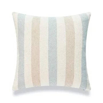 Show moreIntroducing the **Hofdeco Beach Coastal Decorative Pillow Cover**, a perfect blend of style and functionality for your home decor needs. Measuring 18x18 inches, this one-piece throw pillow cover showcases a beautifully crafted striped design in soothing tones of light blue, tan, and taupe. Made from a breathable cotton blend, it provides not only an eye-catching aesthetic but also a durable and textured surface that enhances the visual appeal of your living space. The invisible zipper at the bottom ensures easy insertion of pillow inserts and a seamless look, making it as practical as it is beautiful. Whether you’re sprucing up your couch, sofa, or bed, this pillow cover offers a refreshing coastal vibe that complements both modern and classic decor.