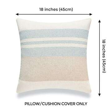 Hofdeco Beach Coastal Decorative Pillow Cover for Couch, Sofa, 18x18, Light Blue Tan Taupe Stripe