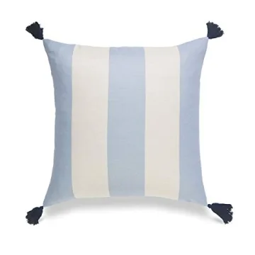 Show moreIntroducing the Hofdeco Beach Coastal Indoor Outdoor Pillow Cover, a stunning home decor accent that effortlessly merges style and functionality. Designed in a refreshing sky blue stripe pattern, this pillow cover is the epitome of coastal charm, capturing the essence of seaside aesthetics. Measuring a generous 20 inches x 20 inches (50x50cm), it’s crafted from high-quality weather-resistant polyester, ensuring durability that withstands the elements while maintaining a soft touch. Adorned with playful corner tassels, it adds a whimsical flair to your space, perfect for brightening up patios, living rooms, or any cozy alcove in your home.