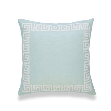 Hofdeco Coastal Decorative Throw Pillow Cover ONLY, for Couch, Sofa, or Bed, Light Aqua Greek Key, 18"x18"