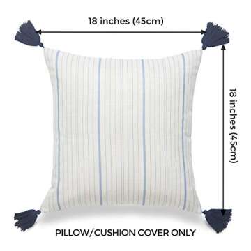 Hofdeco Coastal Decorative Throw Pillow Cover ONLY, for Couch, Sofa, or Bed, Sky Blue Stripe Tassel, 18"x18"