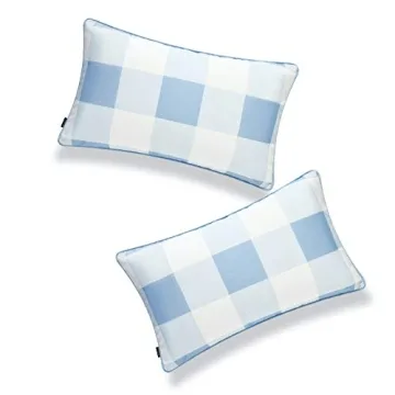 Show more Elevate your indoor and outdoor spaces with the luxurious Hofdeco Coastal Patio Indoor Outdoor Lumbar Pillow Covers, offered in a delightful set of 2. Lovingly crafted from high-quality materials, these pillow covers are designed to enhance your decor with their stunning baby blue buffalo check pattern. Their chic yet classic design seamlessly integrates with any color palette, making them a versatile choice for your home. Whether you are decorating a coastal retreat or a cozy living room, these pillow covers will surely make a statement!