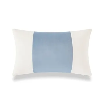 Show moreIntroducing the Hofdeco Coastal Patio Indoor Outdoor Lumbar Pillow Cover - where style meets versatility! This exquisite pillow cover, measuring 12"x20" (30x50cm), features a stunning color-blocked design comprising a luxurious micro velvet center strip in a charming baby blue hue, surrounded by a soft, solid white fabric that boasts no yellow undertones. Not only does this pillow cover elevate the aesthetic of your space, but it also seamlessly blends with a variety of decor styles, providing a high-end look without breaking the bank.