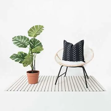 Hofdeco Decorative Throw Pillow Cover ONLY Heavy Weight Pure Cotton Mud Cloth Inspired Black Case White Mountain Stripes 18"x18"