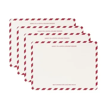 Hofdeco Premium Christmas Holiday Placemats, Set of 4, Water Oil Proof Vegan Leather Place Mats for Dining Table, Candy Cane Border, Red, 14"x19"
