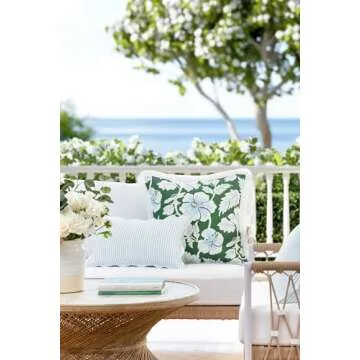 Hofdeco Premium Coastal Patio Indoor Outdoor Scalloped Lumbar Pillow Cover Only, 12"x20" Water Repellent for Backyard, Couch, Baby Blue Print Stripes