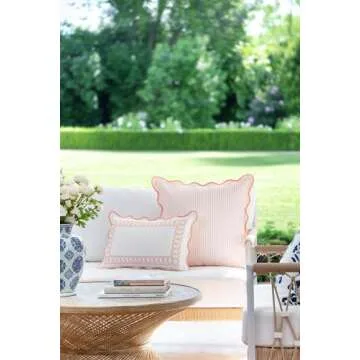 Hofdeco Premium Coastal Patio Indoor Outdoor Scalloped Throw Pillow Cover Only, 20"x20" Water Repellent for Backyard, Couch, Blush Pink Print Stripes