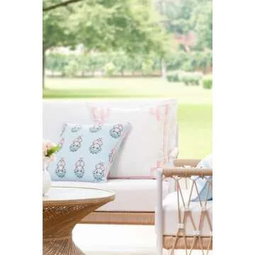 Hofdeco Premium Coastal Patio Indoor Outdoor Throw Pillow Cover Only, 18"x18" Water Repellent for Backyard, Couch, Baby Blue Blush Pink Floral with Piping