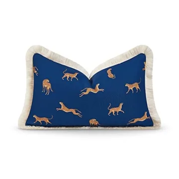 Show more Introducing the **Hofdeco Premium Tropical Patio Indoor Outdoor Lumbar Pillow Cover**, a perfect blend of style and functionality designed to elevate your living space. Made from **weather-resistant polyester**, this vibrant pillow cover showcases a stunning leopard design set against a navy blue backdrop, creating a chic tropical safari vibe. Adding elegance, the pillow is adorned with a **brushed fringe along the edges**, making it a delightful addition to any indoor or outdoor setting. Crafted with an elegant YKK golden brass metal zipper on the back, this 12" x 20" (30x50 cm) pillow cover is not just visually appealing but is also built to withstand the elements, preserving its beauty through the seasons.