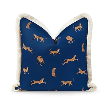 Hofdeco Premium Tropical Patio Indoor Outdoor Pillow Cover Only, 20"x20" Water Resistant for Backyard, Couch, Navy Blue Leopard Fringe