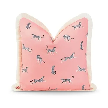 Show moreDive into a world of vibrant elegance with the Hofdeco Premium Tropical Patio Indoor Outdoor Pillow Cover. Measuring a generous 20"x20" (50x50cm), this eye-catching throw pillow cover showcases a stunning leopard design perched upon a soft pink background. The intricate detail is complemented by chic fringe edges and a golden brass YKK zipper at the back, ensuring durability while adding a touch of luxury to your decor. Whether you're refreshing your indoor living space or sprucing up your outdoor oasis, this pillow cover effortlessly marries style with functionality.