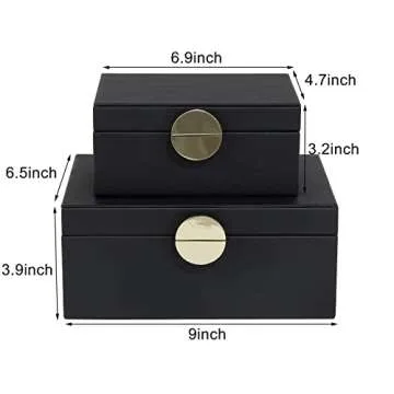 The set includes two beautifully designed boxes, with the larger measuring 9 x 6.5 x 3.9 inches and the smaller at 6.9 x 4.7 x 3.2 inches, allowing for clear organization of your items. Their nested design ensures they occupy minimal space while providing maximum utility, making them ideal for storing everything from medications and photographs to keepsakes and much more. Use them on an entryway table, dresser, or shelf, effortlessly combining decorative flair with convenience.