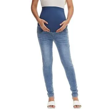 HOFISH Women's Support Skinny Jeans Over The Belly Ultimate Comfort Stretchy Pregnancy Denim Pants LightBlue S