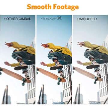 Equipped with an innovative 3-axis stabilization system, the iSteady X ensures that every shot is stable, eliminating unwanted blurring and shaking, even in challenging conditions. The advanced anti-shaking technology works seamlessly to keep your footage smooth while you move, whether you're walking, skating, or filming in a boat on choppy waters.