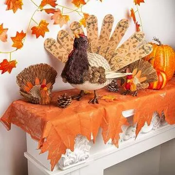 Show more Bring warmth, joy, and a touch of gratitude to your Thanksgiving celebrations with our beautifully handcrafted Thanksgiving Decorations Turkey. This unique decor piece is made from natural materials like hay and felt, ensuring that it not only serves as a festive adornment but also resonates with the essence of nature. Perfect for the holiday party atmosphere, this turkey decoration is designed to be a centerpiece for your fall decorations at home, making every gathering feel special and heartfelt.
