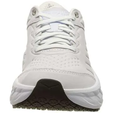 Show moreIntroducing the Hoka Women's Bondi Slip Resistant Sneaker, the ultimate blend of performance and style for the modern woman on the go. Crafted with a sleek white leather and synthetic polyurethane upper, this sneaker offers not just exceptional aesthetics but also unbeatable comfort. The innovative design features a plush EVA midsole that provides superior cushioning, making every step light and airy. Coupled with a durable outsoles that are slip-resistant, this sneaker is perfect for both casual outings and demanding work environments.