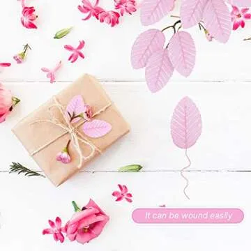 HOKPA 200Pcs Artificial Silk Rose Leaves, Fake Faux Wired Single Leaf for DIY Crafts Floral Arrangements Home Kitchen Wedding Garland Party Decorations (Pink)