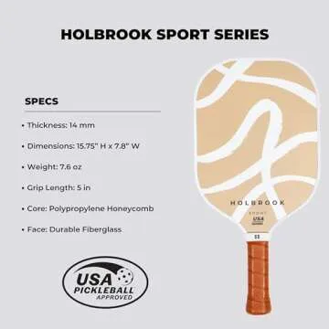 Holbrook Pickleball Paddle - Sport Series, USAPA Approved Pickleball Racket with Durable Fiberglass Surface, Honeycomb Core, Large Sweet Spot, & Stylish Design, Skill Levels (Dune)