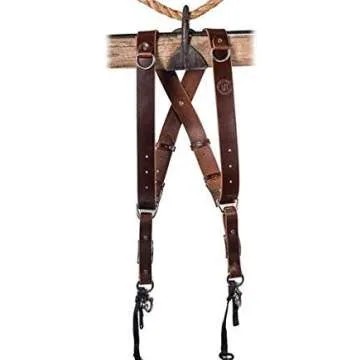 Show moreDiscover the ultimate in comfort and style with the HoldFast Gear Money Maker 2-Camera Water Buffalo Leather Harness. Meticulously crafted from premium Water Buffalo Hide, this harness is designed to accommodate 1, 2, or even 3 cameras effortlessly, ensuring that you can carry your essential gear without the hassle of discomfort. Its innovative X-style design distributes the weight of your cameras evenly across your back, preventing any shifting that could lead to sore shoulders during extended shoots. Available in a rich burgundy color with stunning silver hardware, this leather harness doesn't just perform exceptionally—it looks fantastic too!