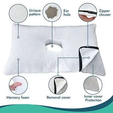 Holey Pillows Ergonomic Firm Memory Foam Ear Pillow with Ear Hole | 50x30cm | for Side Sleepers, Ear Pain & Post-Piercing Relief | Ideal for Chondrodermatitis CNH | Firm Support