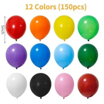 Holicolor 150pcs Balloons 5 Inch 12 Assorted Colors Rainbow Latex Balloons for Party Birthday Baby Shower Anniversary Festival Arch Garland Decoration