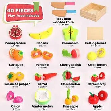 Holicolor 40pcs Wooden Play Food, Play Food Sets for Kids Kitchen Pretend Cutting Play Food for Toddlers 1-3