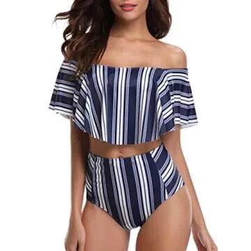 Show moreIntroducing the stunning Holipick Women 2 Piece Ruffled Flounce Off Shoulder Tankini Top with Polka Dot Bottoms Swimsuits Set, designed for the modern woman who loves to blend style with comfort. This chic swimsuit features a fashionable flounce design that beautifully complements your silhouette, while the off-shoulder style adds a touch of charm and allure, making it perfect for poolside gatherings or sunny beach days. With removable shoulder straps, you can customize the fit to suit your preference, ensuring you feel confident and supported throughout your swimming adventures.
