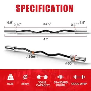 Holleyweb Olympic Barbell Curl Bar EZ Bar Strength Training Bar Threaded Chrome Barbell Bar for Weightlifting, Hip Thrusts, Squats and Lunges, Black, 47 inches (A-YD04002)