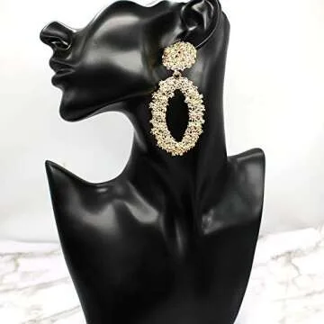 Hollow Geometric Large Oval Dangle Earrings Metal Statement Drop Earrings Punk Bohemian Raised Textured Design Big Hoop Earrings for Women Fashion Jewelry (Gold oval earrings)