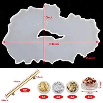 Hollow Resin Tray Molds, Silicone Geode Agate Tray Mold Including 1 Geode Platter Mold, 2 Metal Handles, 12 Boxes Gold Foil Flakes, Epoxy Resin Casting Molds for Making Faux Agate Tray, Serving Board