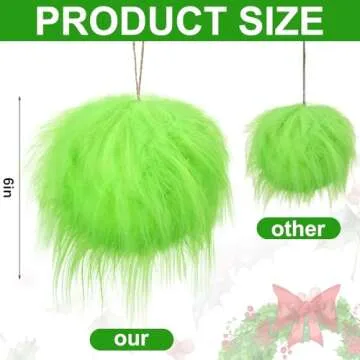 Hollowfly 4 Pcs 6 Inches Lime Green Furry Christmas Ball Ornaments Large Green Christmas Ball Faux Fur Hanging Christmas Ball Ornament for Indoor Christmas Tree Anniversary Wedding Party Holiday
