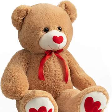 Show moreThis enchanting 36-inch HollyHOME Giant Teddy Bear Stuffed Animal is not just a toy but a monumental expression of love, making it an exceptional gift for loved ones. Crafted with sumptuous tan fur and clasping a striking red heart, this plush bear exudes warmth and affection, ideal for conveying feelings without words. The generous size approximates a small adult, ensuring a substantial, huggable presence. This plush is perfect for a variety of special moments, ranging from Valentine's Day surprises to everyday gestures of love.