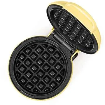Holstein Housewares Personal/Mini Waffle Maker, Non-Stick Coating, Yellow - 4-inch Waffles in Minutes, Ideal for Breakfast, Brunch, Lunch or Snacks