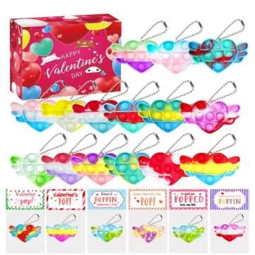 Show more Delight the young ones this Valentine's Day with the Holydeck Valentines Day Gifts for Kids, a specially curated set designed for maximum fun and excitement in the classroom! This remarkable package includes 24 Valentine's Day cards paired with colorful, heart-shaped pop fidget toys, making it the ultimate choice for classroom exchanges, parties, and celebrations. Each vibrant card features cheerful designs and heartwarming messages that will surely brighten your child's friends' day.