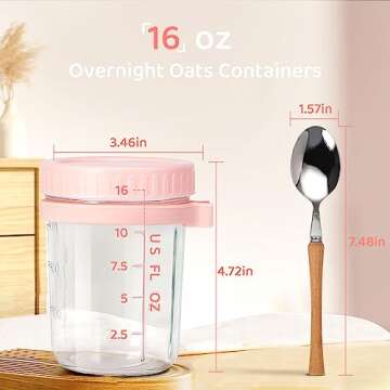 HomArtist Glass Overnight Oats Containers with Lids and Spoon, 16oz Wide Mouth Mason Jars for Overnight Oats, Cereal, Yogurt, Salad Lunch Container with Measurement Marks - MultiColor 4 Pack