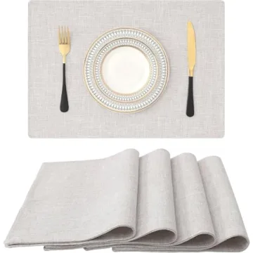 Show more Elevate your dining experience with the Homaxy Cloths Placemats for Dining Table Set of 4. Crafted from a luxurious cotton-linen blend, these placemats not only protect your table but also add a touch of elegance to any setting. Measuring 13" x 19", they are perfectly sized to accommodate a full place setting with ample room to spare. Available in a beautiful beige, these placemats blend seamlessly with any decor style, be it rustic, modern, or traditional. Designed for both beauty and functionality, these placemats resist heat and stains, ensuring your dining table remains pristine while you entertain family and friends.