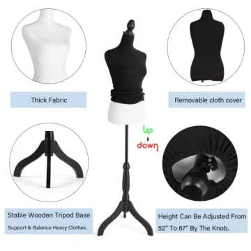 Show moreIntroducing the HOMBOUR Dress Form with Detachable Black Fabric Cover, a versatile and indispensable tool for designers, decorators, and sewing enthusiasts alike. This mannequin is not just a model but a solution tailored to meet your creative needs. With a seamless transition from an elegant white to a sleek black, the high-quality fabric cover allows for customization to suit your project aesthetics perfectly. Adjustability is a key feature of this dress form, accommodating varying garment sizes and hangs beautifully. With a height range adjustable from 52 to 67 inches, it can adapt not only to different fabric lengths but also to the creator’s working comfort, making it a must-have for every workspace.