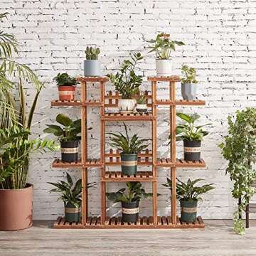 HOMCHWELL Plant Stand Indoor Outdoor, 3-Tier 17 Potted Multiple Plant Shelves, Wood Plant Ladder Holder Flower Stand for Patio, Garden, Balcony, Living Room (47.2 inch Height)