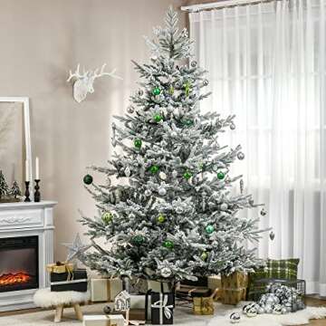 HOMCOM 8 Foot Pine Snow Flocked Artificial Christmas Tree with 1479 Realistic Cedar Branches, Auto Open, Home Holiday Decoration, Green